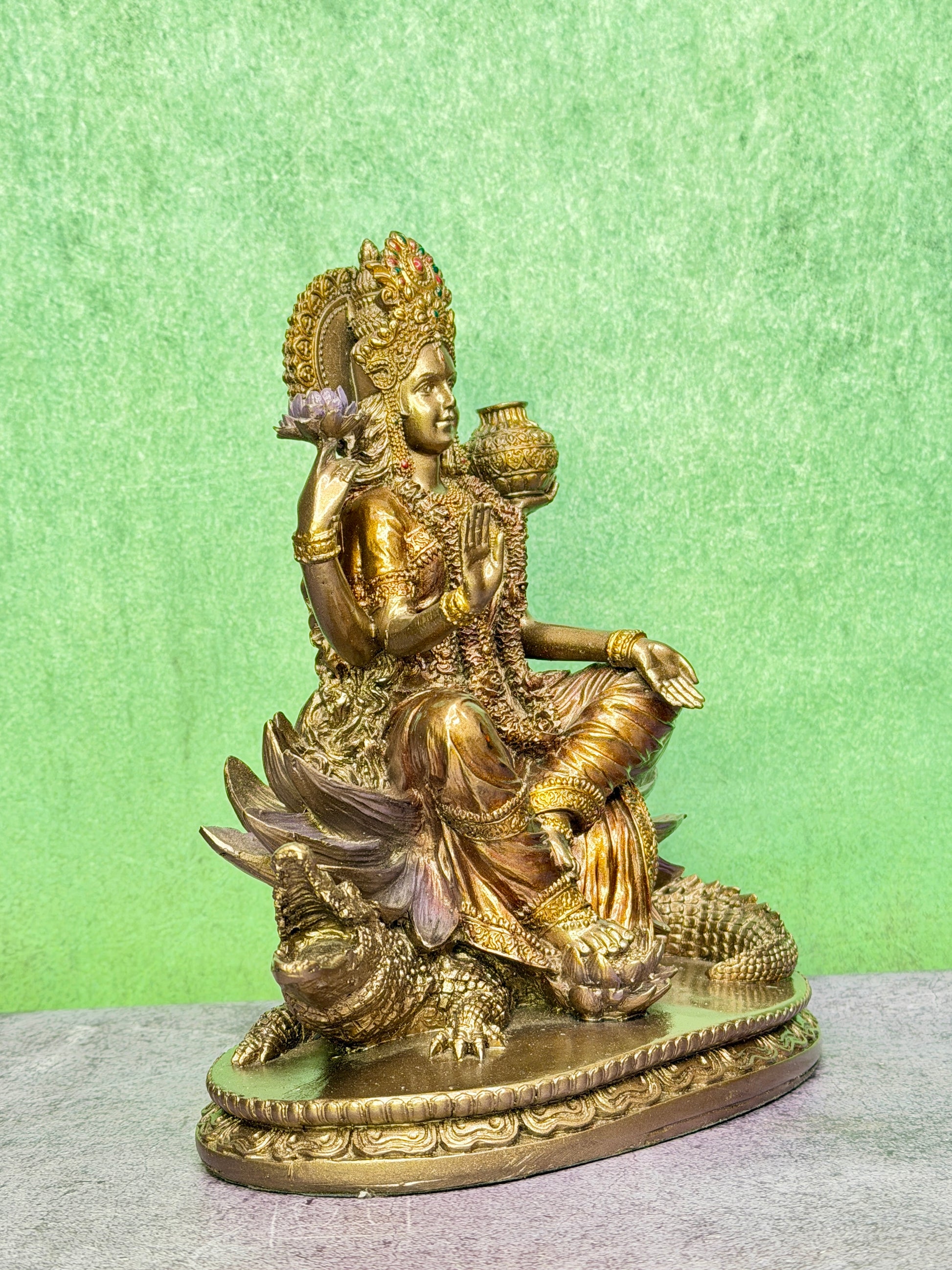 This intricately handcrafted resin statue of Goddess Ganga captures her divine grace and tranquil presence. A perfect addition to temple spaces, home décor, or meditation areas, it symbolizes purity, renewal, and spiritual flow.