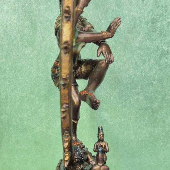 This finely detailed Natraj statue in premium resin embodies the cosmic dance of Lord Shiva, symbolizing creation, preservation, and destruction. Its artistic form adds a divine rhythm to your home temple or décor space.